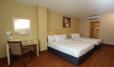 Our Twin bed room comes either with 01 King Size Bed, room amenities include Air-conditioning, complimentary Wi-Fi, coffee/tea making facilities, safe box and LCD TV with satellite channel.